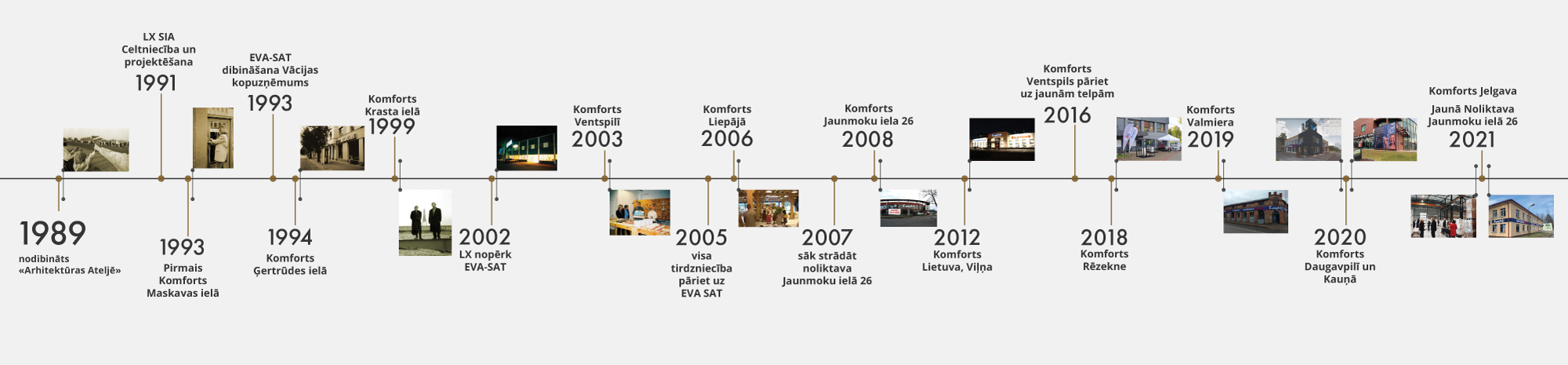 Currently, the company "EVA - SAT" owns the largest plumbing and heating equipment stores KOMFORTS - in Riga, Ventspils, Liepāja, Jelgava, Valmiera, Rēzekne and Daugavpils. Since 2012, EVA-SAT has expanded its field of activity by opening two stores in Lithuania - Vilnius and Kaunas.